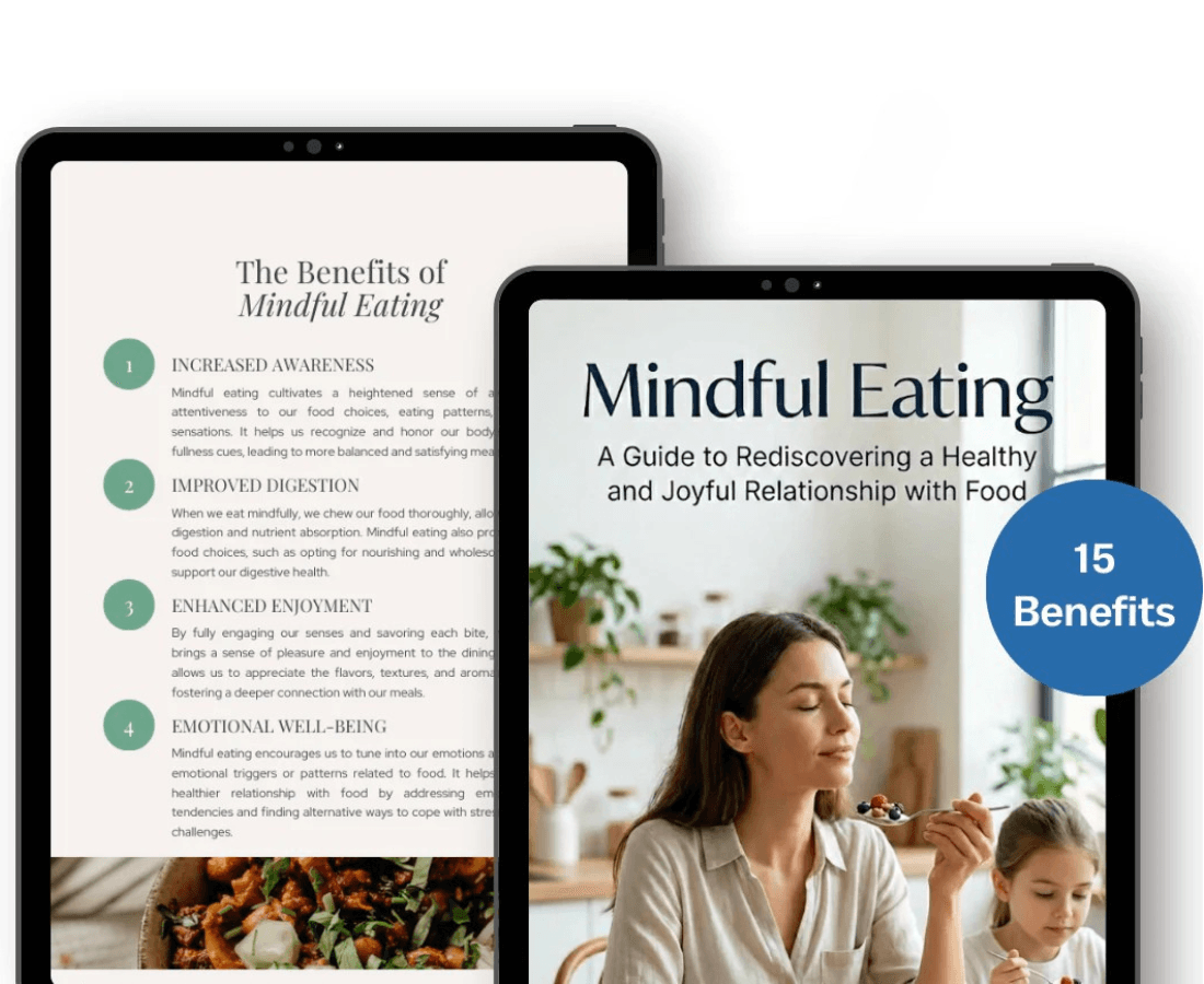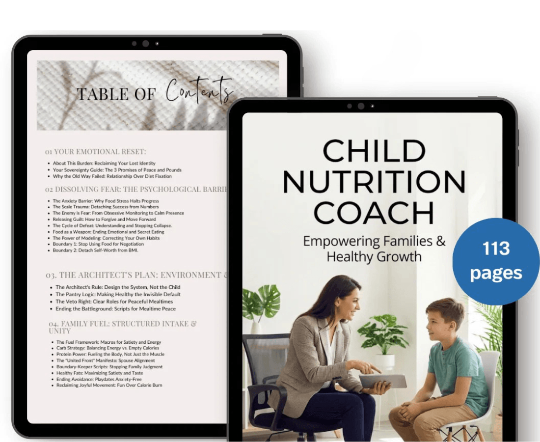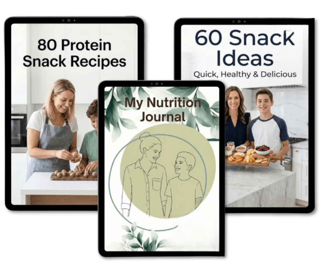 3 Bonuses : The Nutrition Journal to track daily patterns and notice invisible habits. 60 no-cook snack ideas ready when hunger strikes. 80 kid-friendly recipes that stabilize hunger instead of spiking it.
